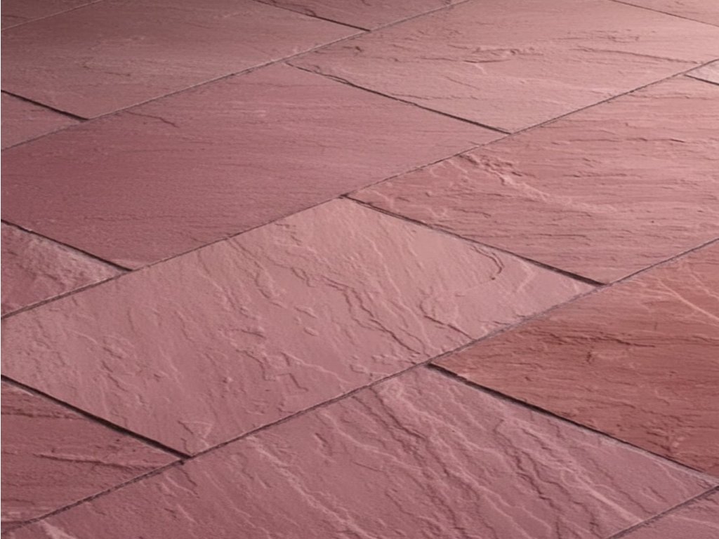 Indický formátovaný pískovec v růžovém až červeném odstínu.