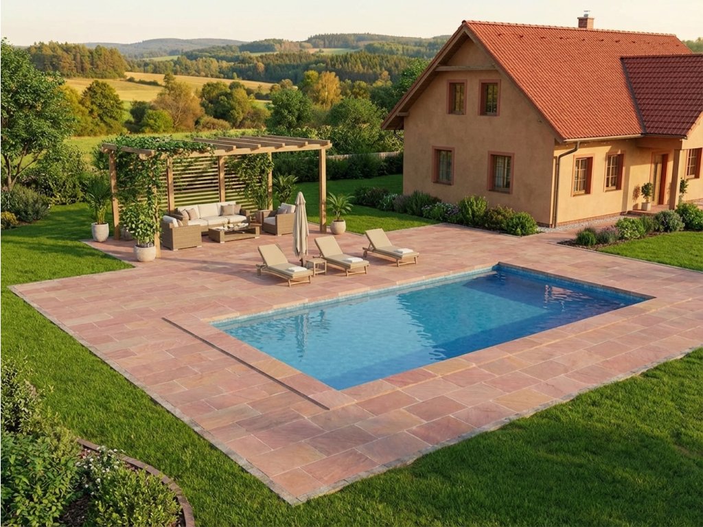 Kamenná dlažba pískovec, růžový