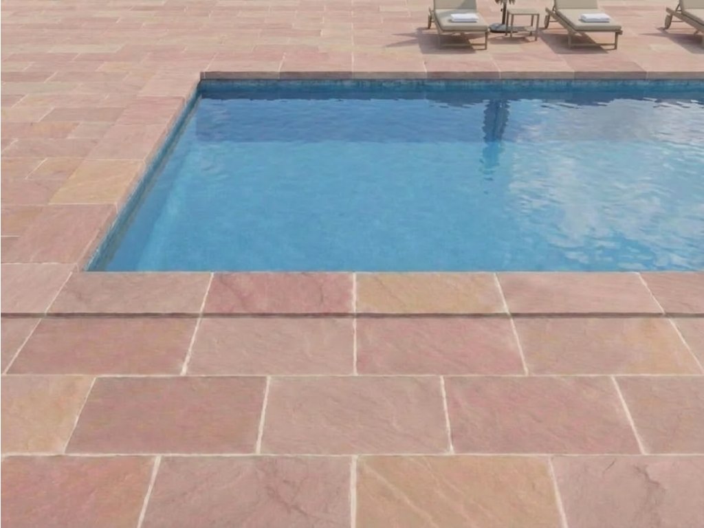 Vzhledem k tomu, že se jedná o přírodní materiál, každý kámen je jedinečný. Jeho přírodní barva růžová je s různými žilkami a vzory, což dodává prostoru příjemnou atmosféru. Tato kamenná dlažba z pískovce je také velmi odolný a trvanlivý materiál, který odolává povětrnostním podmínkám a nevyžaduje údržbu.
