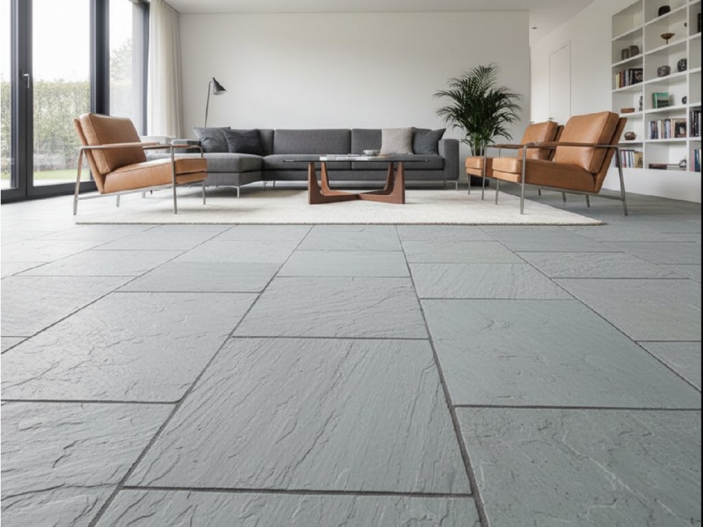 Vzhledem k tomu, že se jedná o přírodní materiál, každý kámen je jedinečný. Jeho přírodní barva šedá je s různými žilkami a vzory, což dodává prostoru příjemnou atmosféru. Tato kamenná dlažba z pískovce je také velmi odolný a trvanlivý materiál, který odolává povětrnostním podmínkám a nevyžaduje údržbu.