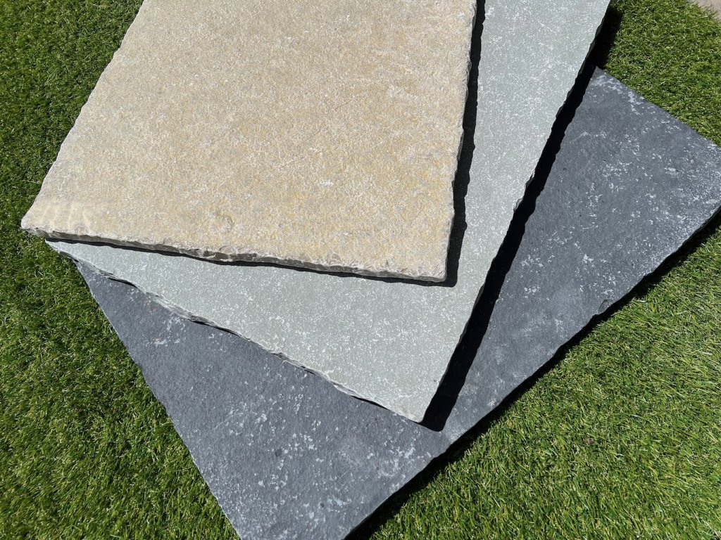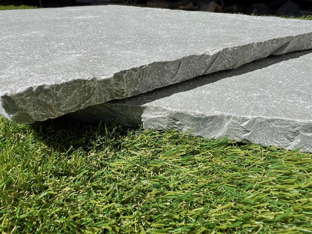 Indický formátovaný vápenec dodáváme v šedém až tmavě šedém odstínu. Dlaždice jsou formátovány řezáním s následným ručním osekáním hran, povrch je přírodní opracován pemrlováním.