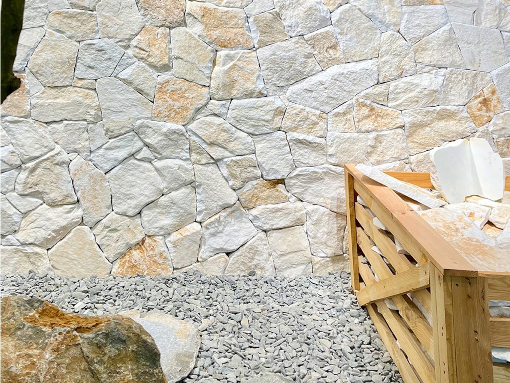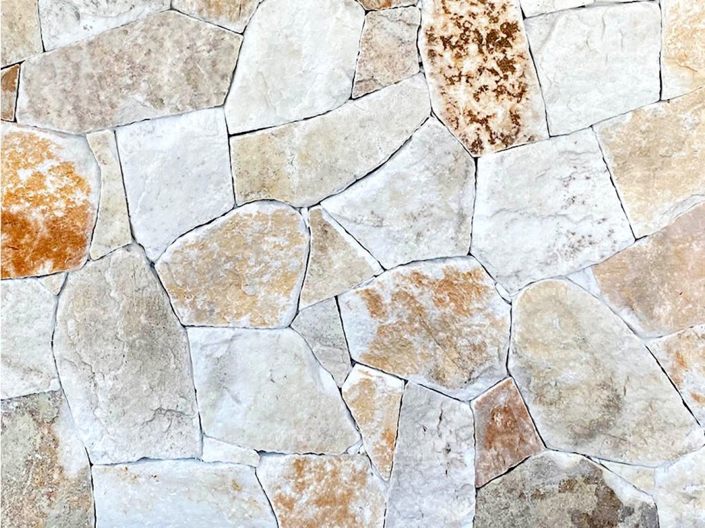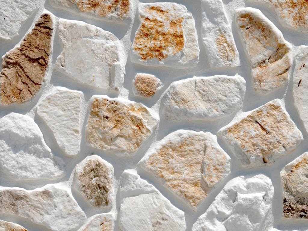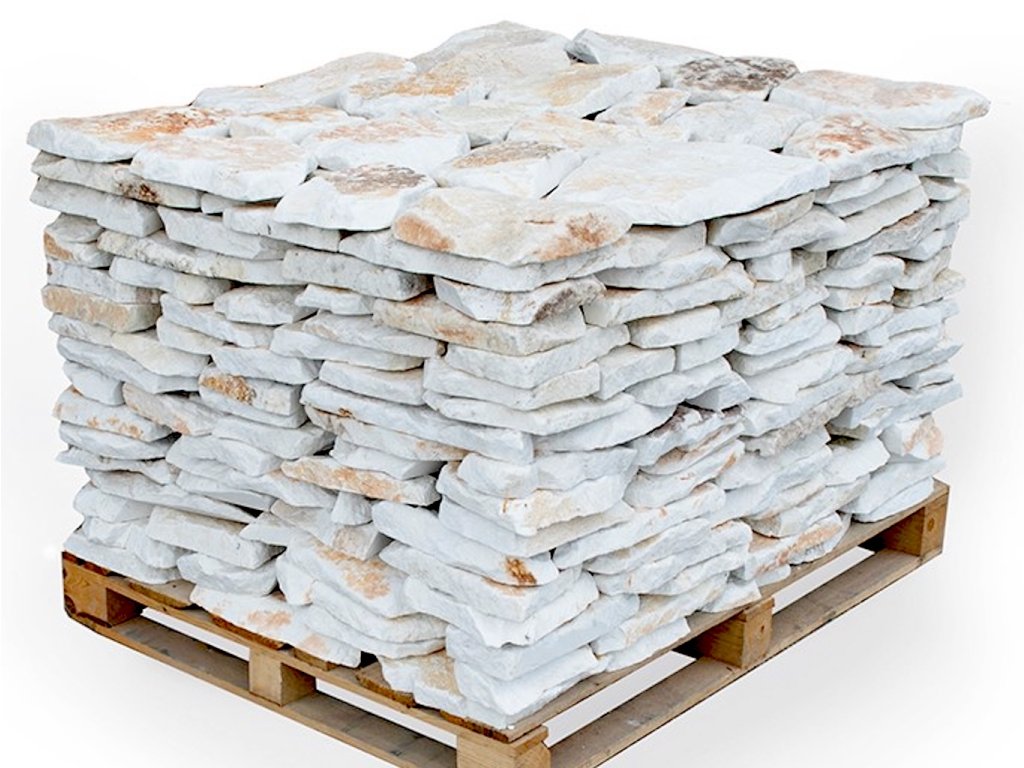 Jedná se o robustní obklad z přírodního kamene-mramor. Jednotlivé kameny mají vždy jednu stranu řezanou, kterou se lepí na obkládanou stěnu. Rohové díly jsou předpřipraveny také řezáním.